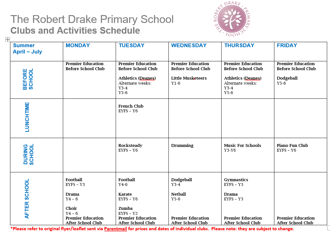 Several before and after school clubs have a limited number of places and some only run at certain times of the year. Once your child has joined a club they are expected to attend regularly. Where clubs are oversubscribed a waiting list will be kept.